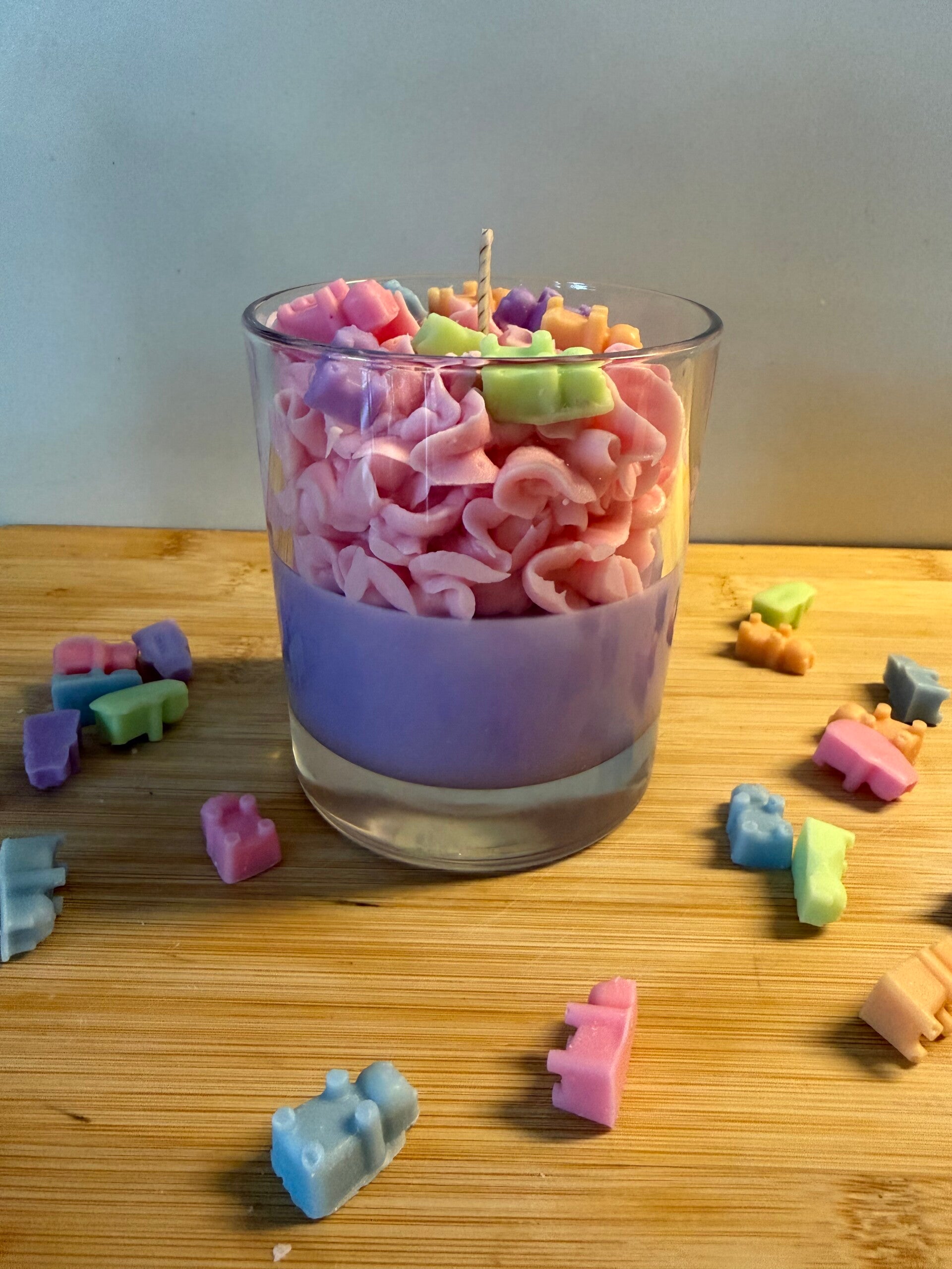 Laat je meenemen naar een wereld vol kleurrijke snoepjes met deze handgemaakte kaars. De geur is heerlijk fruitig, candy-achtig en vrolijk, precies zoals je favoriete gummibeertjes. Perfect om je huis op te fleuren, een gezellige sfeer te creëren of als zoet cadeau voor iemand die van snoep en gezelligheid houdt. Licht aan, adem in… en geniet van een onweerstaanbare snoepachtige geur!